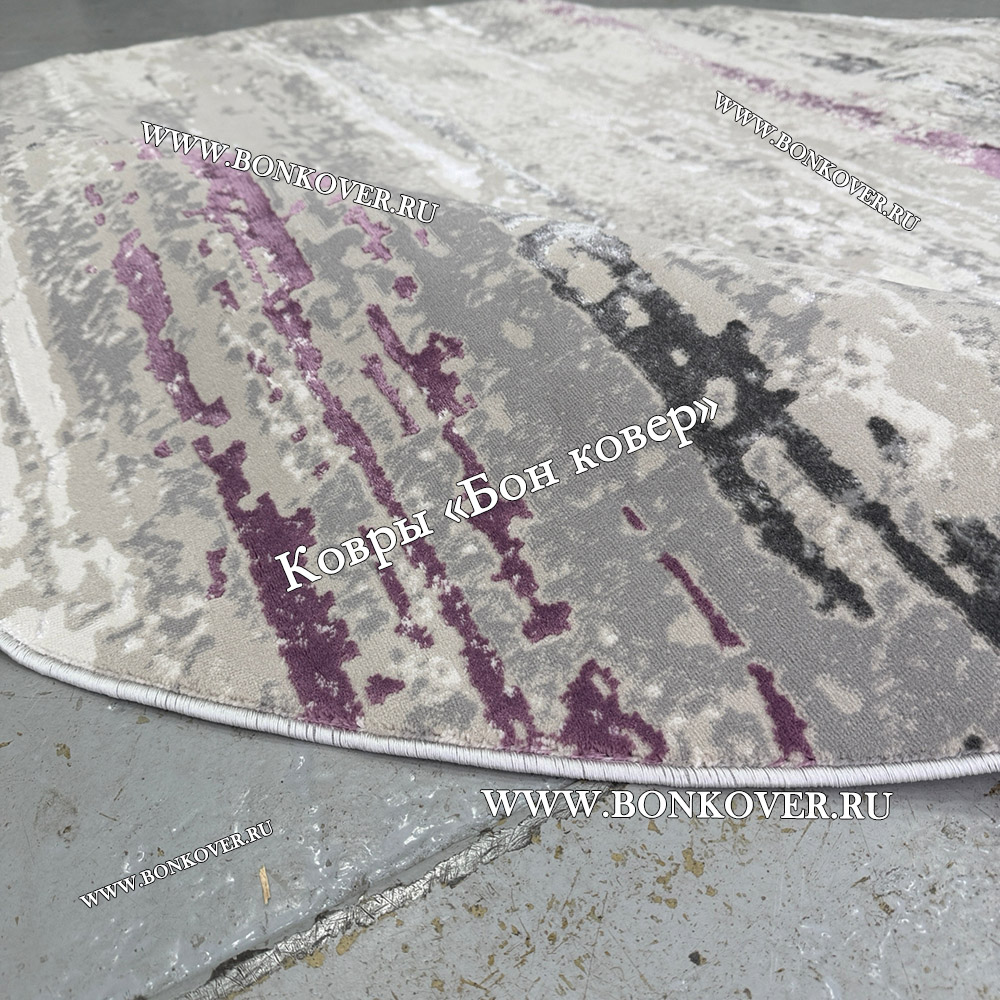 Круглый Ковер Для Гостиной Сиреневый С Серым Дизайн 30451 станет идеальным дополнением интерьера, оформленного в современном или классическом стиле. Мягкое, но прочное, ковровое покрытие обеспечивает тепло- и шумоизоляцию, отличается длительным сроком эксплуатации, пожаробезопасностью, экологичностью и высокой износостойкостью, является отличным барьером от повышенной влажности в помещении и утеплителем для холодного пола. Благодаря качеству материалов, ковер не деформируется, сохраняет первоначальный вид под тяжестью предметов мебели. За его поверхностью легко ухаживать.